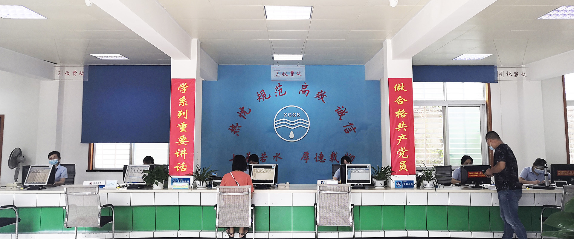 客服中心分別在市民之家、區便民服務中心、玉泉路、城站路、南臥路設有3個營業廳,為城區10萬余戶客戶提供水費繳存、用水報裝、業務咨詢等窗口服務。為方便客戶,營業廳推出了窗口繳存、預存代扣、網上銀行、手機銀行、自助終端結算、銀行代扣、支付寶結算、微信支付等多種結算方式。
